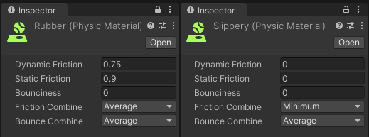 - Wheel Materials. These are Unity Physic Material objects, which can be created by right-clicking on the Project window -> Create -> Physic Material. The driving wheels should have a higher-friction material and the caster wheels should have a very slippery one.