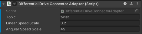 If you are using the Connector adapter, you can set the topic, which the connection will try to use to subscribe to the message. Also, you can scale the incoming input for Linear and Angular speeds using the Speed Scale properties.