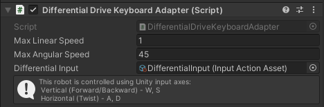 - Differential Input Asset - the InputActionAsset which will be used to capture input from the keyboard. If not set already, set it to the "DifferentialInput" asset from the package Differential adapters folder.