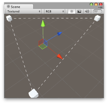 The following example uses DrawDottedLines to draw a line between objects defined in a list. To use this example, save the following script into the Assets/Editor folder: