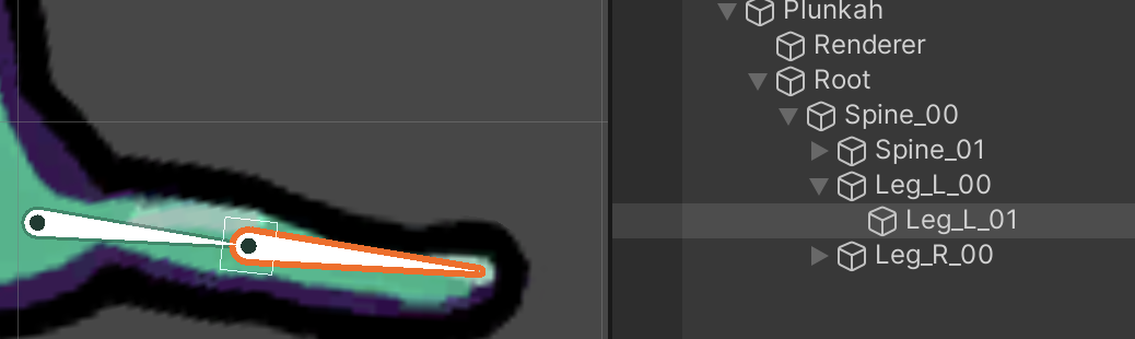 この例では、階層内の Root ボーンが Plunkah であるため、このボーンにコンポーネントを追加します。