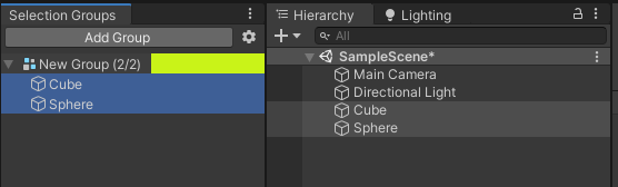 Selection Groups を使うことで、共通の名前で多数のUnityオブジェクトを分類できます。 デフォールトとして、Selection Groups のデータはシーンに保存され、スクリプトでデータをアクセスできます。