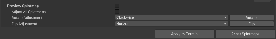 Flip Adjustment | Horizontal (水平) または Vertical (垂直) を選択して、反転の向きを制御します。Flip (反転) ボタンをクリックすると、プレビューでスプラットマップが反転します。 |