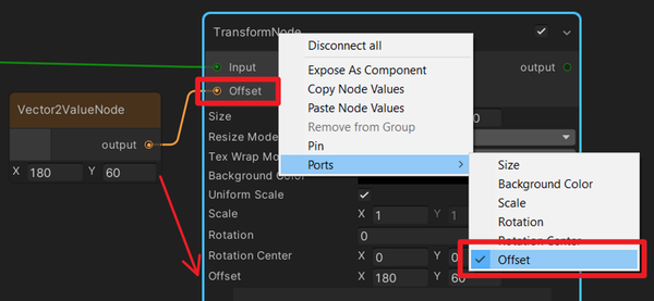ノードのプロパティを入力ポートとして追加する場合。 を作成し、プロパティに直接値を割り当てることができます。 これにより、同じ Value Node で複数のノードのプロパティに同じ値を割り当てることができます。 グラフの整理がしやすくなります。