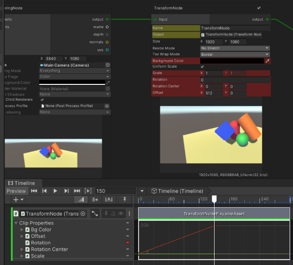 タイムラインの再生ヘッドを、TransformNodePlayableAsset の開始と終了の間の位置に移動します。そして、以前グレーアウトしていたレコードボタンが赤く変わるのを確認してください。