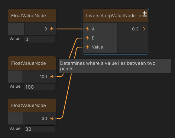 ある値が 2 点の間のどこに位置するかを決定します。 詳しくは Mathf.InverseLerp を参照してください。