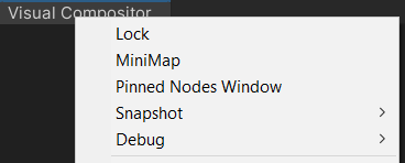 Visual Compositor ウィンドウには、ウィンドウタイトルを右クリックしてアクセスできる追加オプションがあります。