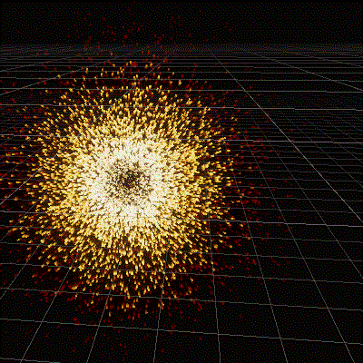 Velocity from Direction And Speed (Random Direction) ブロックは、指定した方向と direction 属性間のブレンド率に基づいて、パーティクルの速度を計算します。