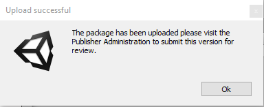 アップロードが終了するとエディターはダイアログボックスを表示し、パッケージがパブリッシャーポータルにあることを確認するよう知らせます。