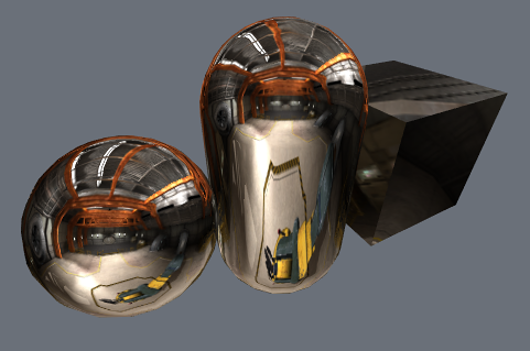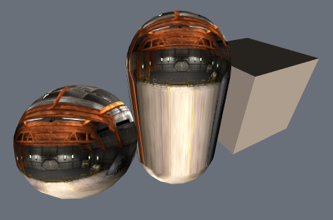 一般的に TexGen CubeReflect は、単純な キューブマップ反射に利用されます。 ビュー空間で法線にそったビューの方向に反射し、 UV 座標として使用されます。