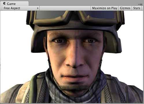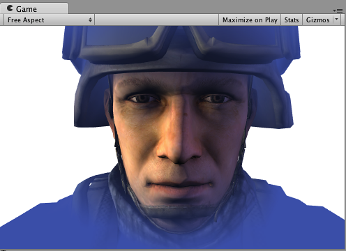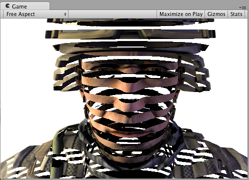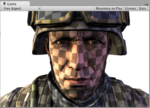 スクリーンスペースでの細部テクスチャを兵士の頭部モデルに施しても実際的にはあまり意味はありませんが、ここでは、ビルトイン screenPos