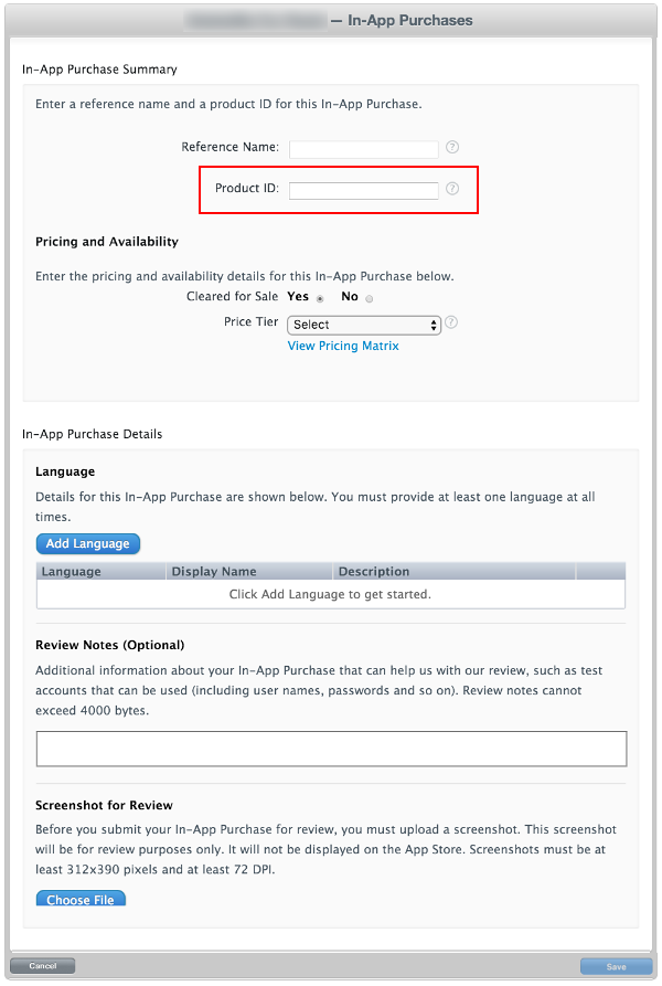 注意: Explicit App ID を使用してください。Wildcard App ID (com.example.*) は、In-App Purchases を利用するアプリケーションには使用できません。