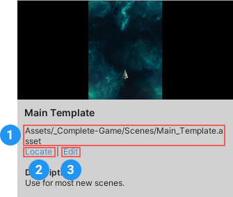 Inspector ウィンドウでテンプレートを開き、そのプロパティを編集 するには、Edit リンク (下の画像の 3) を選択します。