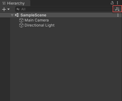 これを有効にすると、Hierarchy ウィンドウにアイコンが表示され、Transform ソート (デフォルト) か Alphabetic (英数字順) ソートを切り替えることができます。