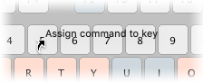 特定のキーが割り当てられているコマンドを確認するには、マウスのポインターをショートカットキーにマウスオーバーします。ツールチップに、キーに割り当てられているコマンドが表示されます。