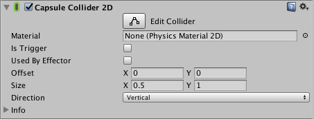 Offset | Capsule Collider 2D ジオメトリのローカルのオフセットを設定します。 |