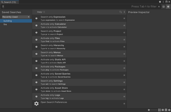 Help 検索プロバイダーは、検索結果エリアにさまざまな種類の検索に関するクイックリファレンスを表示します。各ヘルプアイテムには、特定の種類の検索を実行するための構文や、検索の使用に関するその他の指示を記載されています。
