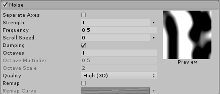 노이즈를 최대한으로 제어하기 위해, Separate Axes 옵션을 사용할 수 있습니다. 이 옵션을 사용하면 각 축에서 세기와 재매핑을 별도로 제어할 수 있습니다.