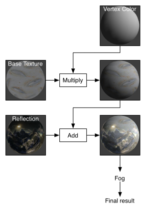 ) texture combine modes. If you need them, do the math in the pixelThe smallest unit in a computer image. Pixel size depends on your screen resolution. Pixel lighting is calculated at every screen pixel. More info