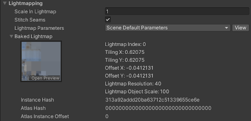 Scale in Lightmap Specify the relative size of the Renderer’s UVs within a lightmap.
