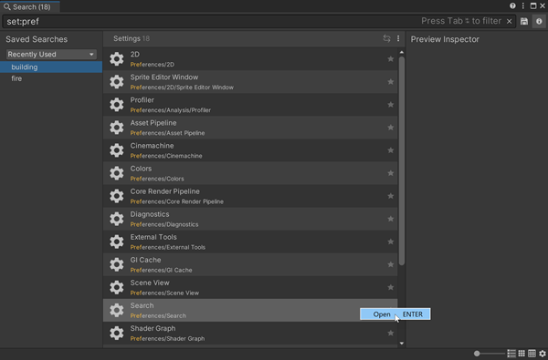 See in Glossary and Preferences windows. It returns all Settings and Preferences pages that match the search query.