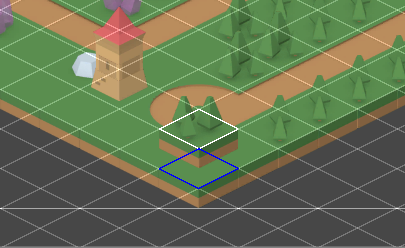 view, the brush preview now displays both the Tile at the Cell’s original position with a Z value of 0 as a blue outline, and its painted position with the Z-as-Y offset applied is displayed with a white outline.