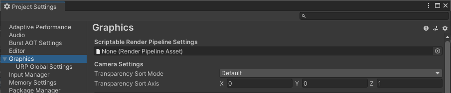 Option 1: For a single setting across all platforms 1. Go to Edit > Project Settings and select the Graphics category.