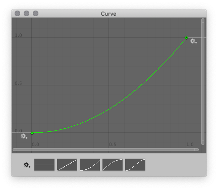 인스펙터에는 각 축에 대한 커브 미리보기가 표시됩니다. 미리보기 창을 클릭하여 해당 축에 대한 고유한 커브를 정의하십시오. 비워 두면 해당 축을 따라 아무 움직임도 일어나지 않습니다.
