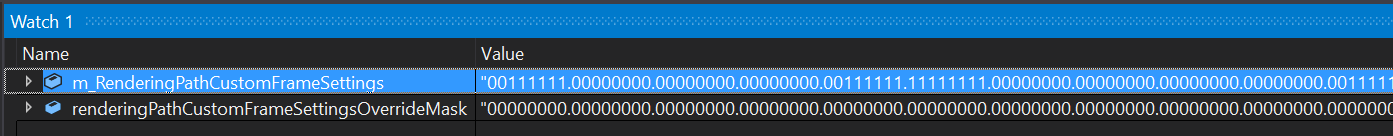 다음은 프레임 설정 오버라이드 마스크에 액세스합니다. 이는 오버라이드된 값을 사용할 프레임 설정을 제어하며 FrameSettingsOverrideMask