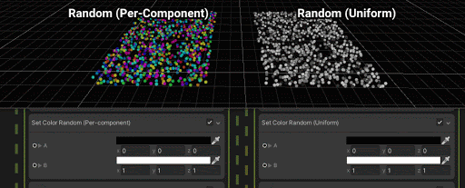 Per-Component는 속성 타입의 각 컴포넌트에 대해 0-1 범위 사이의 난수를 계산한 다음, 최종 값을 생성하기 위해 각 무작위 값을 사용하여 두 범위 값(A 및 B)의 각 컴포넌트 사이를 보간합니다.