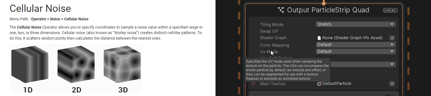 이제 문서에는 비주얼 이펙트 그래프의 모든 노드에 대한 레퍼런스 정보가 포함됩니다. 또한 속성, 블록, 컨텍스트, 연산자, 다양한 메뉴 및 옵션에 툴팁이 포함됩니다.